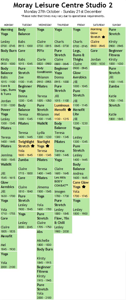MenoFit: These are 45-minute, easy to follow classes geared up to help you feel better and look after your health. The focus will be on Menopause related topics like bone and heart health, along with an introduction to strength training, which particularly helps with mid-section weight gain.